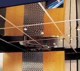 Our mirrorlite ceiling glassless mirror panels drop into standard exposed grid systems.